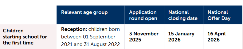 Your child will start full-time school in September 2026 if they turn 5 between 1st September 2021 and 31st August 2022. If you are unsure, please give us a call and we can advise you.